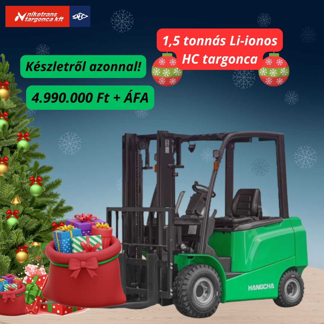 1,5 tonna névelges teherbírású elektromos LI-ION akkumulátorral felszerelt homlokvillás Hangcha targonca.