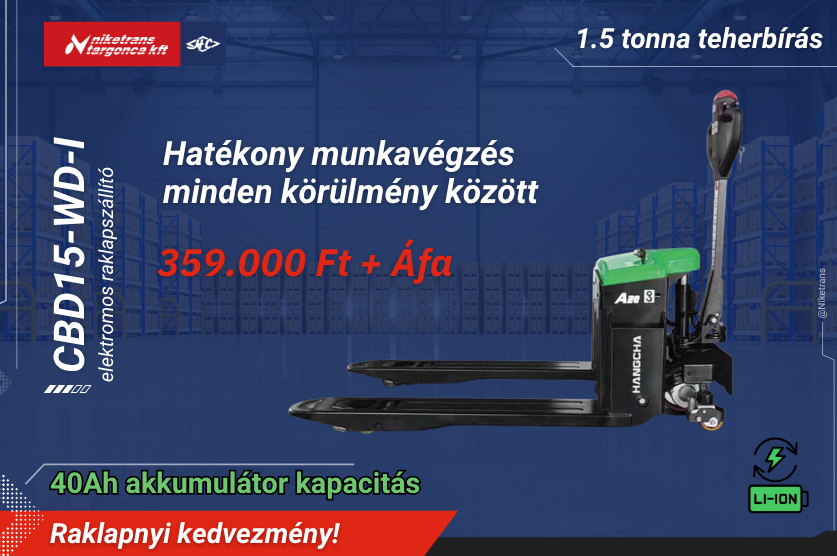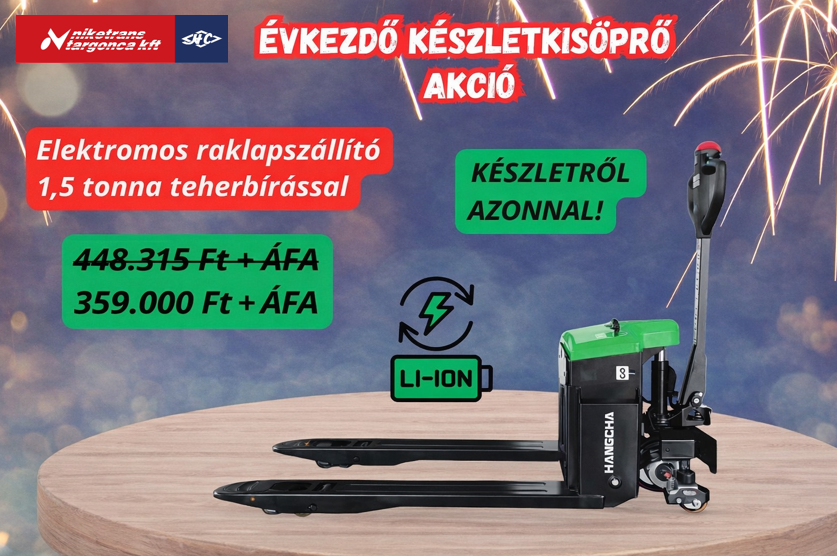 Évkezdő készletkisöprő akció a Niketrans-nál! HC Elektromos raklapszállító targonca 359.000 Ft+ÁFA!